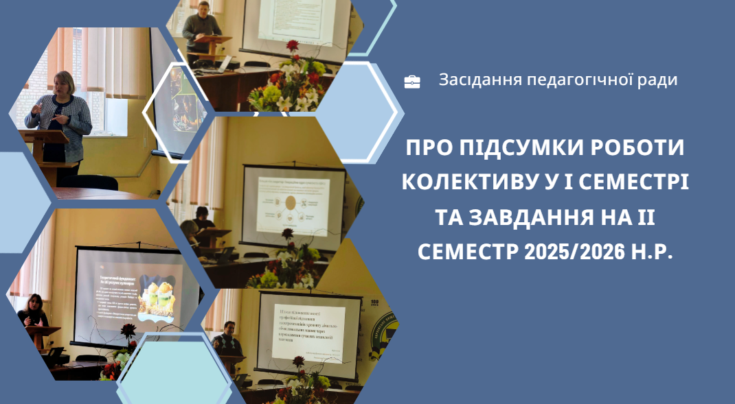 08 січня 2026 року у конференц-залі нашого закладу відбулося планове засідання педагогічної ради. Педагогічний колектив зібрався, щоб підбити підсумки роботи за I семестр та визначити ключові вектори розвитку на майбутнє.…