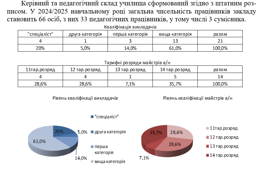 - 5 майстрів виробничого навчання мають 14 тарифний розряд