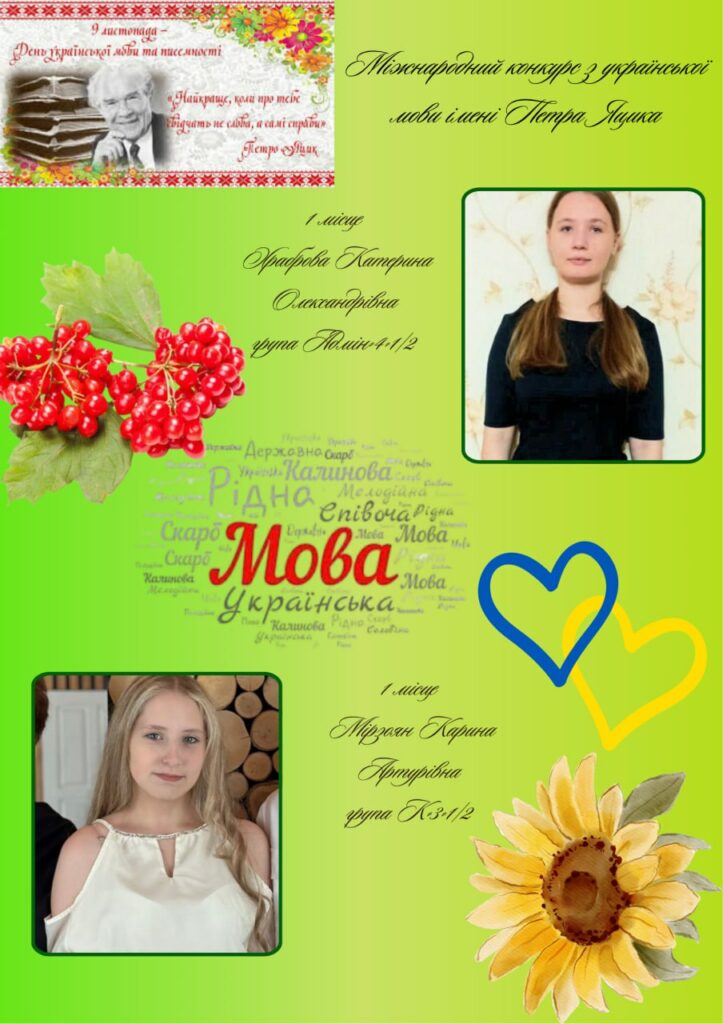 у обласному етапі ХХІІІ Міжнародного конкурсу з української мови імені Петра Яцика здобувачки освіти училища посіли: