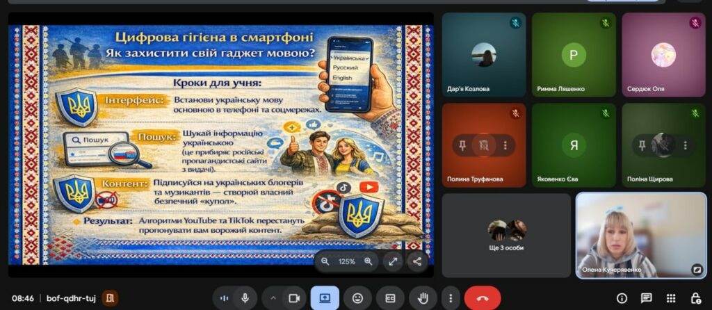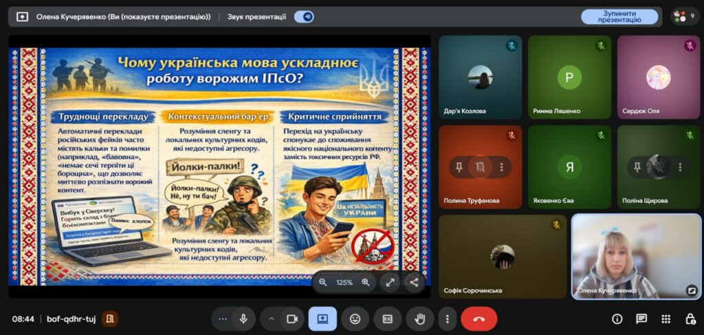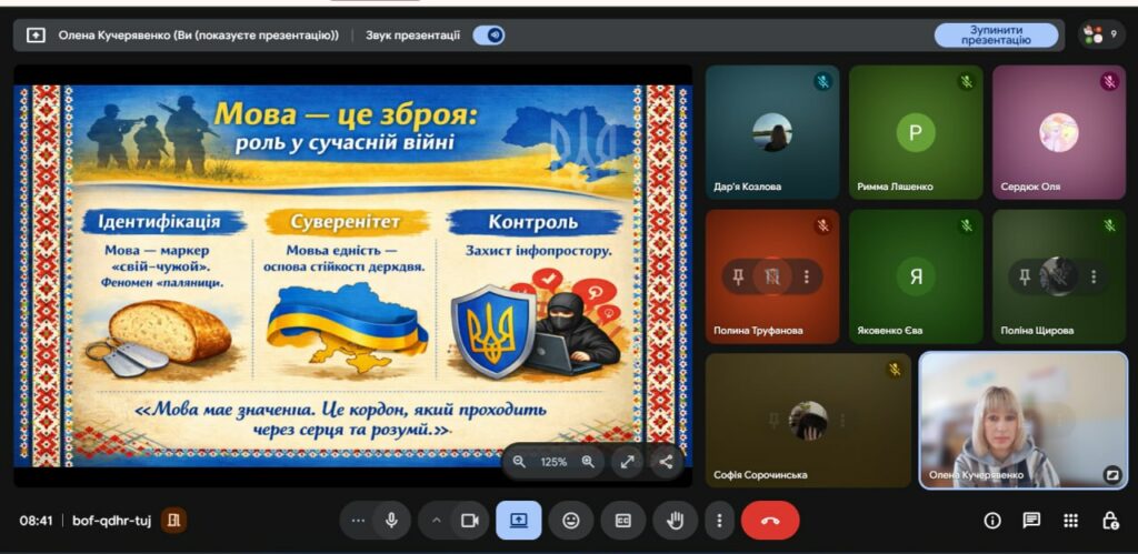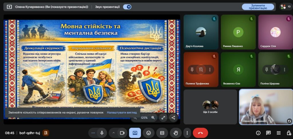 Під час зустрічі викладачі та здобувачі освіти обговорили, чому в умовах повномасштабного вторгнення мовне питання є критично важливим для національної безпеки. Основна увага була приділена таким аспектам: