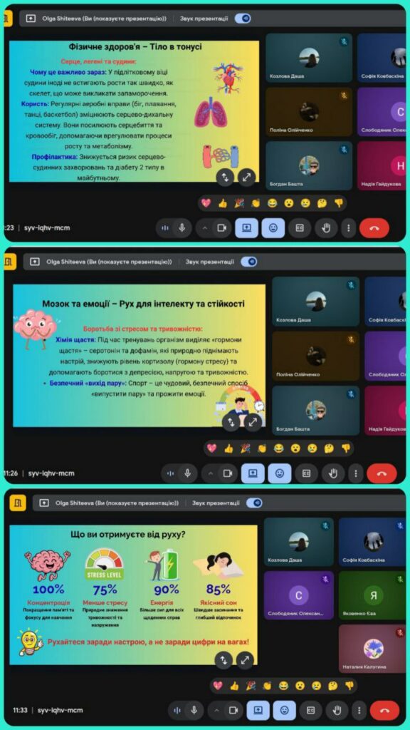 Також було наголошено на тому, що фізична активність не лише зміцнює м’язи та серцево-судинну систему, але й суттєво покращує когнітивні функції: пам’ять, концентрацію та здатність до навчання.