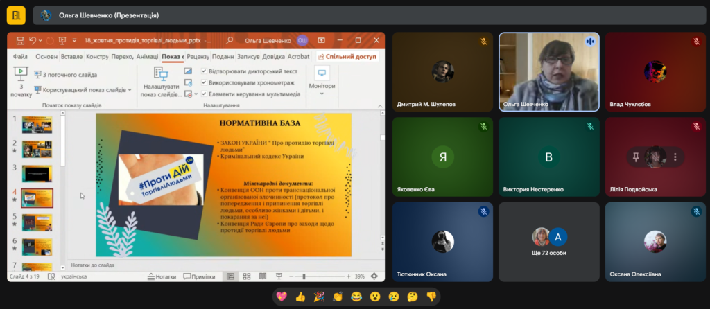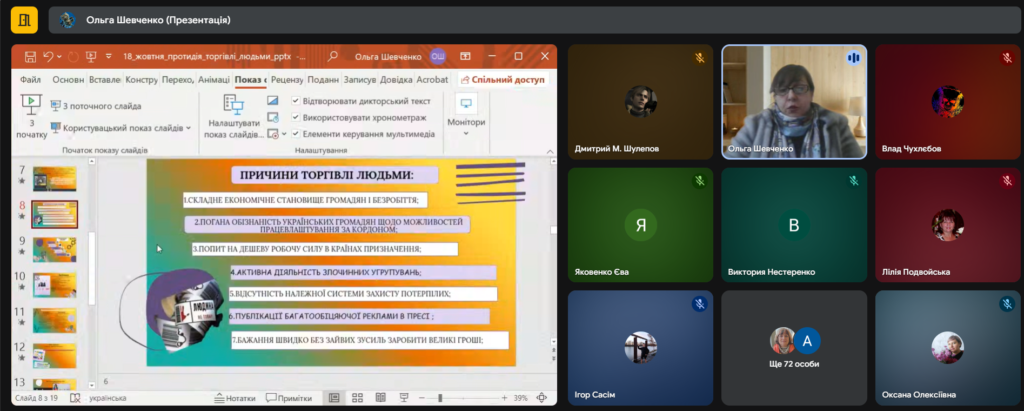 20 жовтня 2025 року у Державному навчальному закладі «Харківське вище професійне училище № 6» було проведено важливий інформаційно-просвітницький захід, присвячений запобіганню торгівлі людьми. Організатором виступив соціальний педагог училища Ольга ШЕВЧЕНКО.