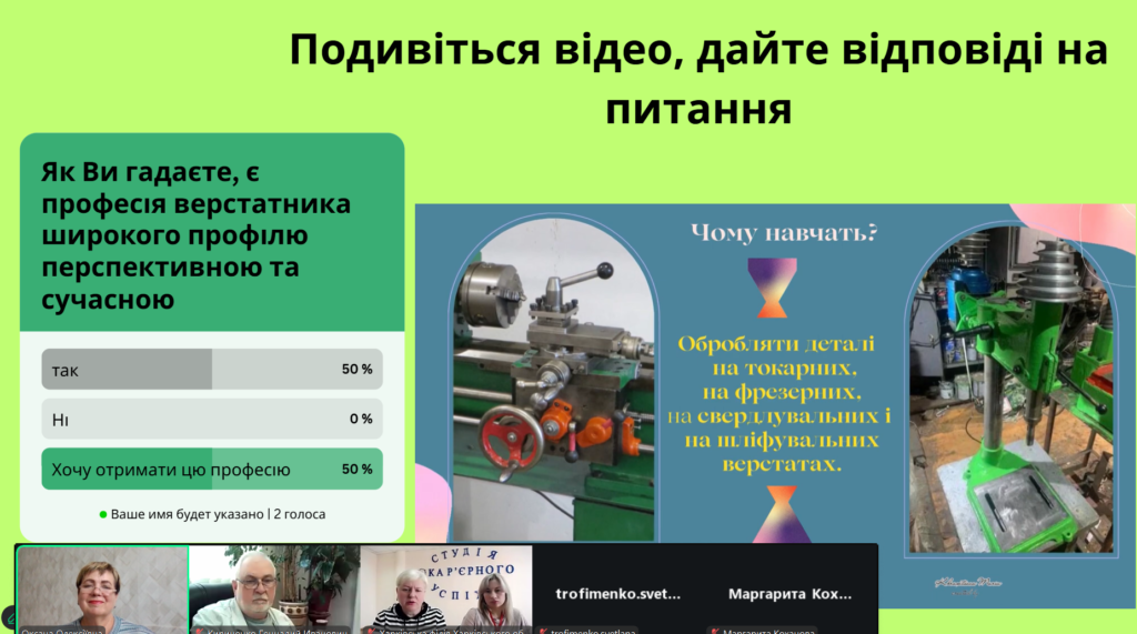 - Поспілкуватися з фахівцями: Учні та викладачі училища поділилися власним досвідом та розповіли про переваги робітничих професій, які є основою для відновлення економіки країни.