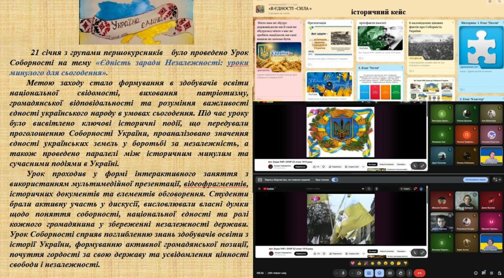 22 січня 2025 р. для студентів-першокурсників було проведено патріотичний захід — урок соборності на тему: «Єдність заради незалежності: уроки минулого для сьогодення».